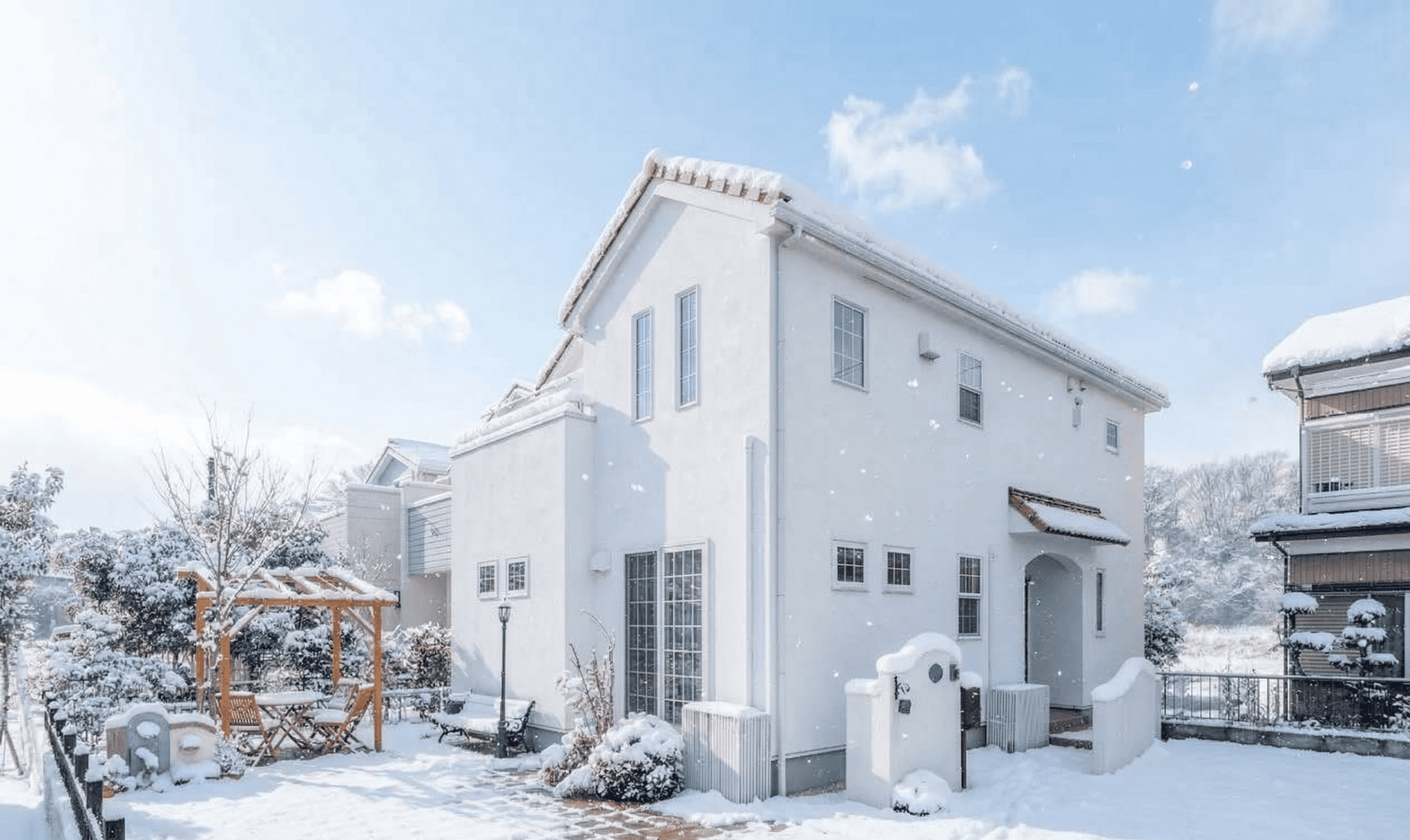プライバシーを守る高いフェンスに囲まれた、開放感抜群のお庭です。ウッドデッキから続く美しい人工芝のスペースは、子どもたちがのびのびと走り回ったり、家族でピクニック気分を味わったりできる、特別なプライベートリゾートです。